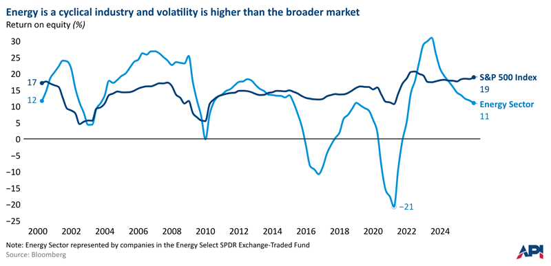 Taken together, this means the energy sector tends to experience higher highs and lower lows than many other industries.